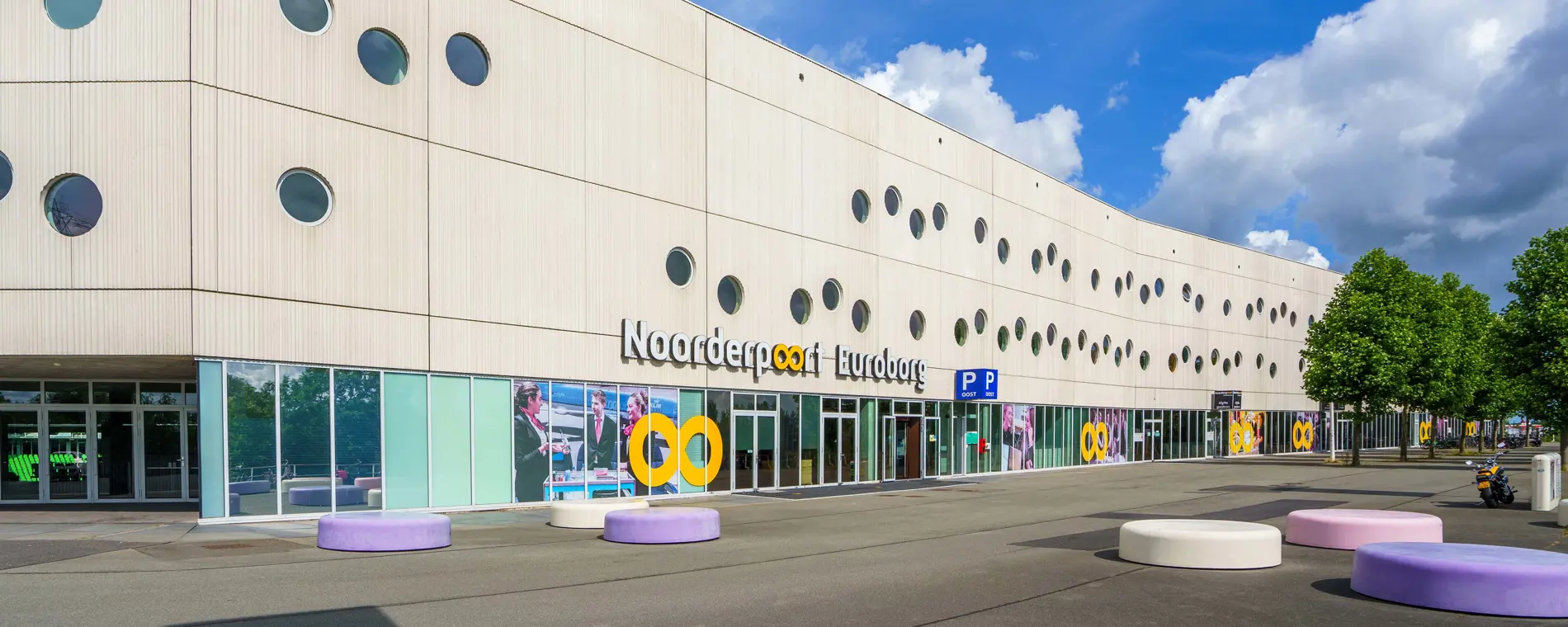 Kom je met de auto naar de Open Dag, dan kan je betaald parkeren in parkeergarage Euroborg. Volg in de garage de borden ‘Noorderpoort’. Vanuit de garage neem je de trap omhoog naar de ingang van de school.