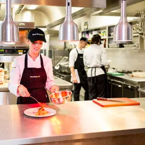 “Daarnaast is dagplanning een essentieel onderdeel in de keuken. Je leert vooraf gerechten te bereiden en waar je deze kan bewaren totdat de gasten arriveren. Als de planning in de soep loopt, dan ontstaat er chaos. Dat wil je natuurlijk voorkomen. Op zo’n moment komt het aan op goede samenwerking. We hebben gelukkig een fijne stagegroep en maken er met elkaar wat moois van.”